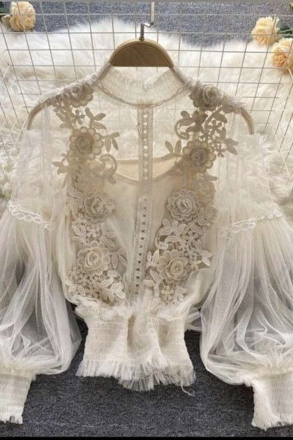 Mesh Lantern Sleeve Slim Short Shirt Free Size Short